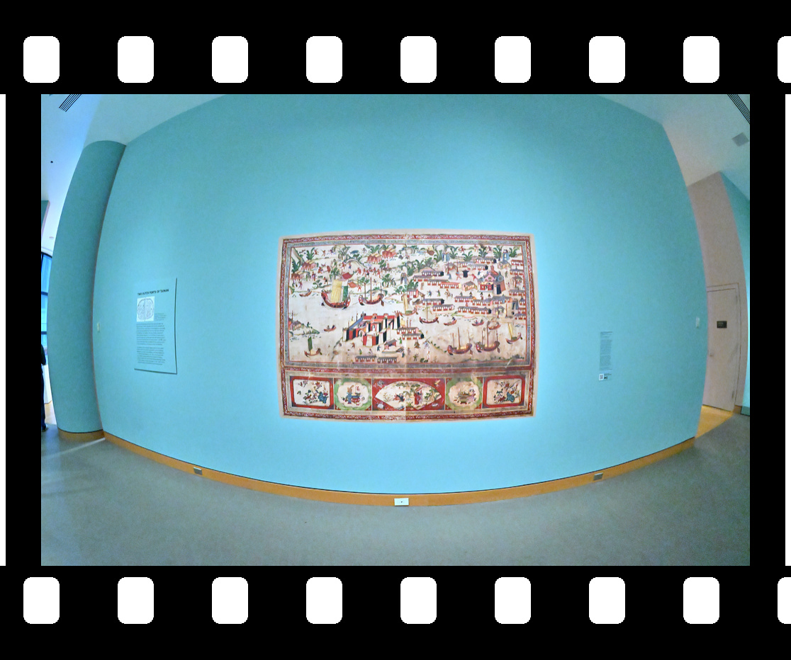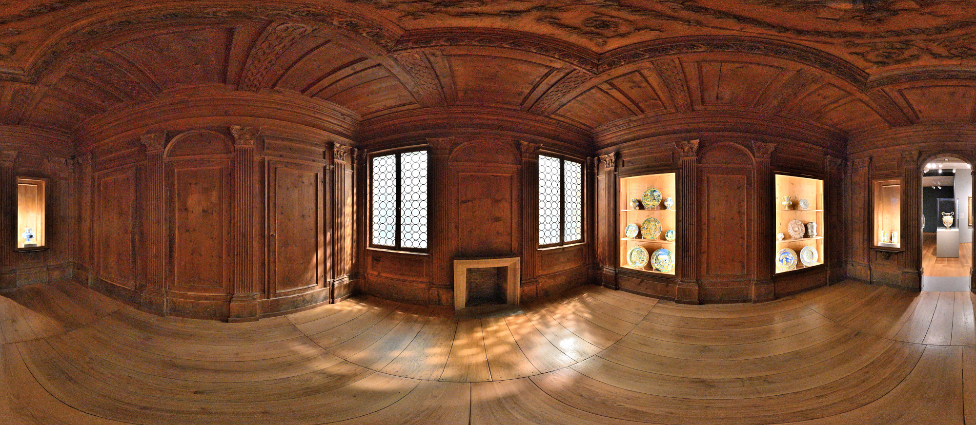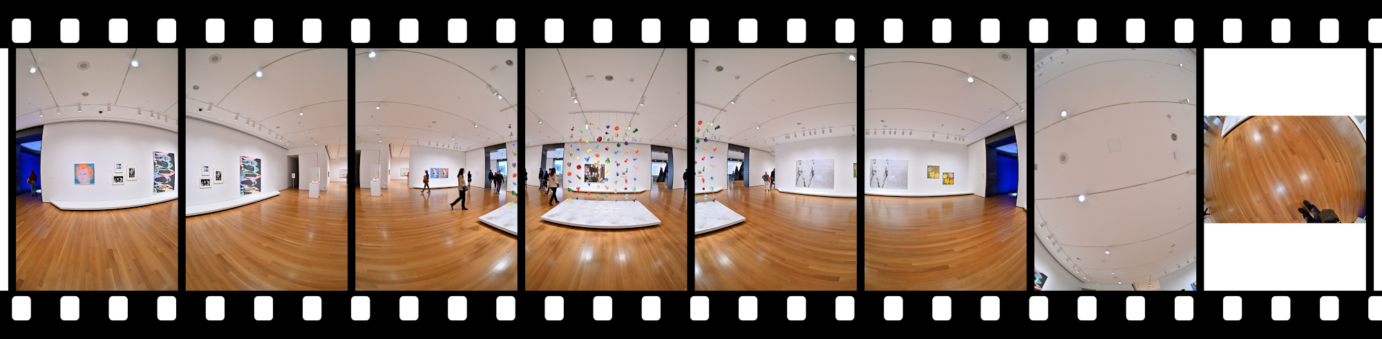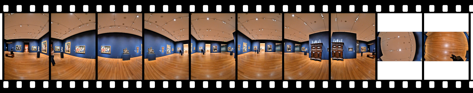 There was no time for multiple exposures for HDR, and of course no tripod because we were in a museum. I only had a brief moment when the room was empty to capture a 360°Ă180° panorama.