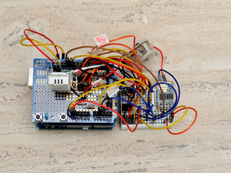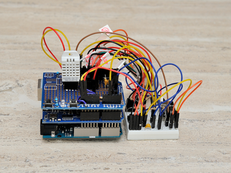 The white sensor is a DHT22 to measure the humidity and temperature inside.