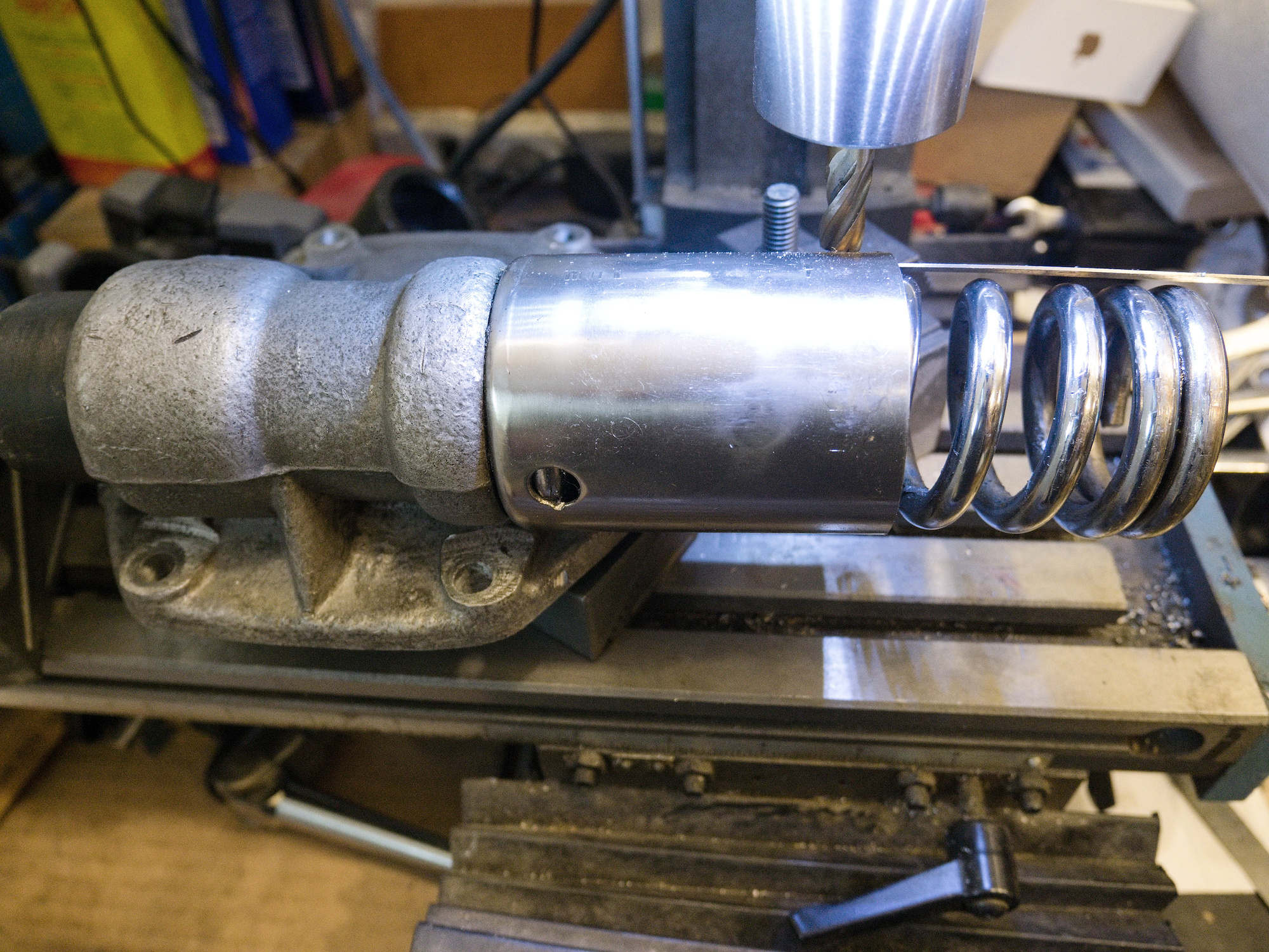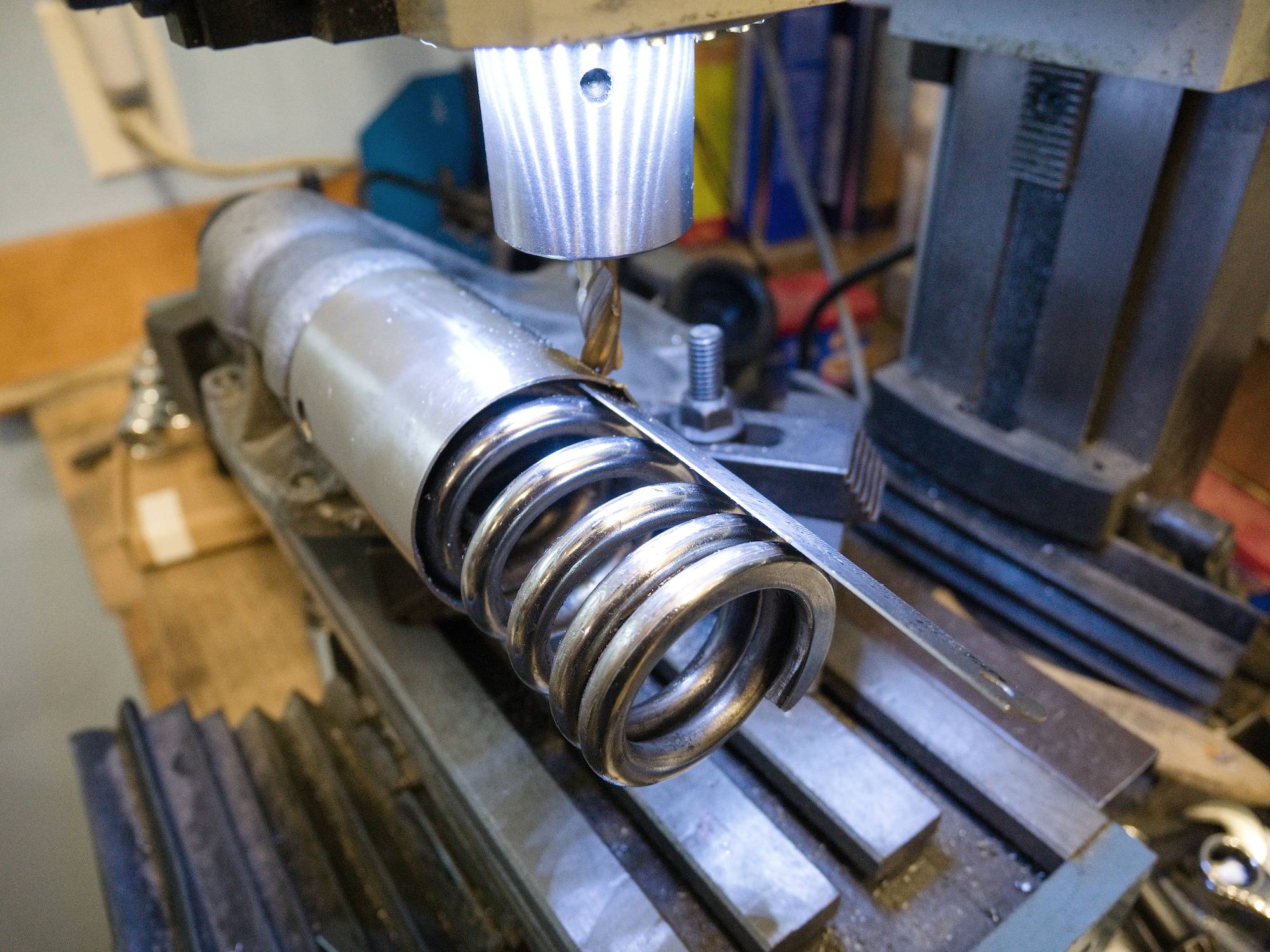 The surgery starts with the removal of the cap. The endmill is positioned to not cut all the way through the metal to not damage the spring.