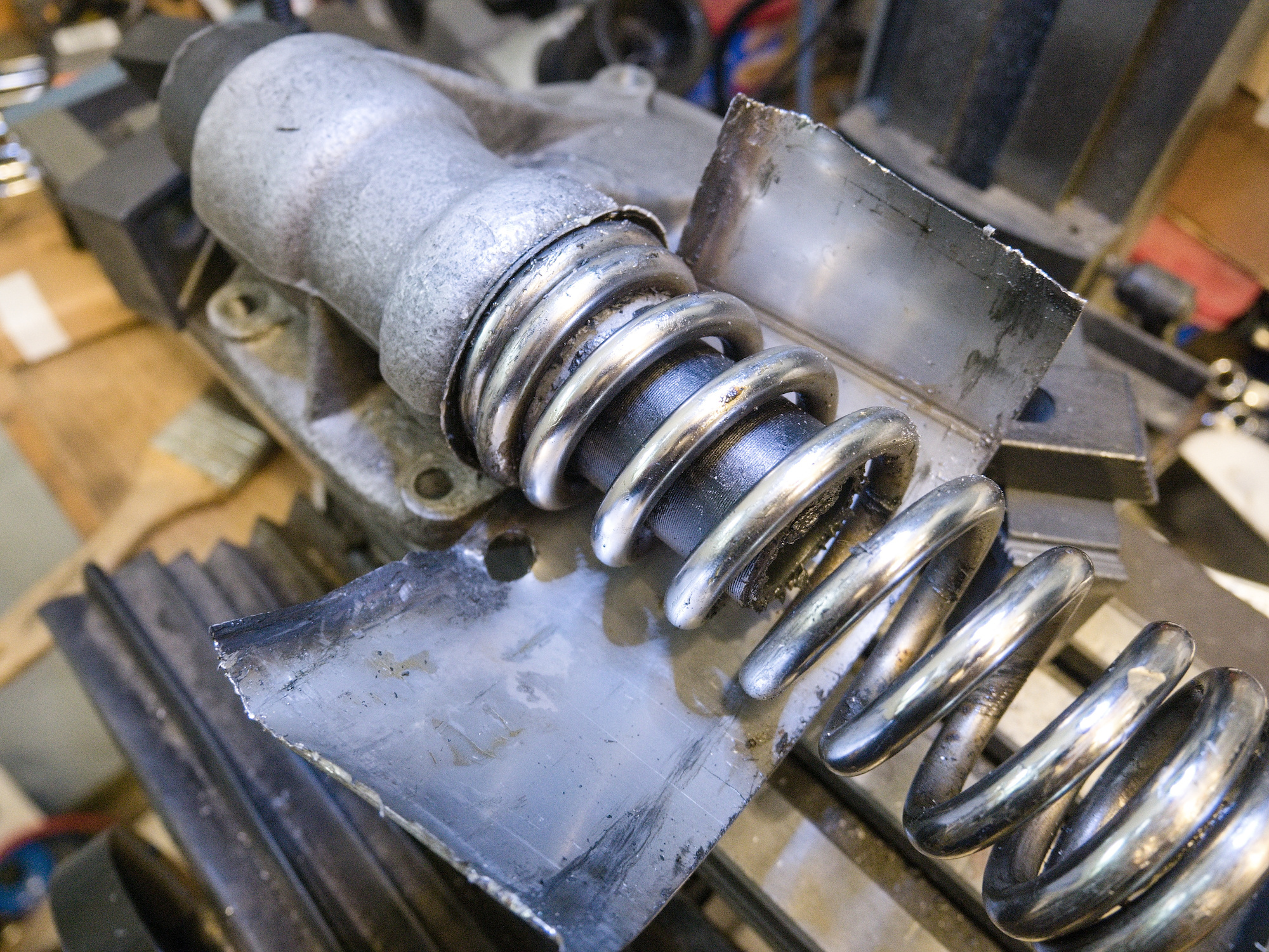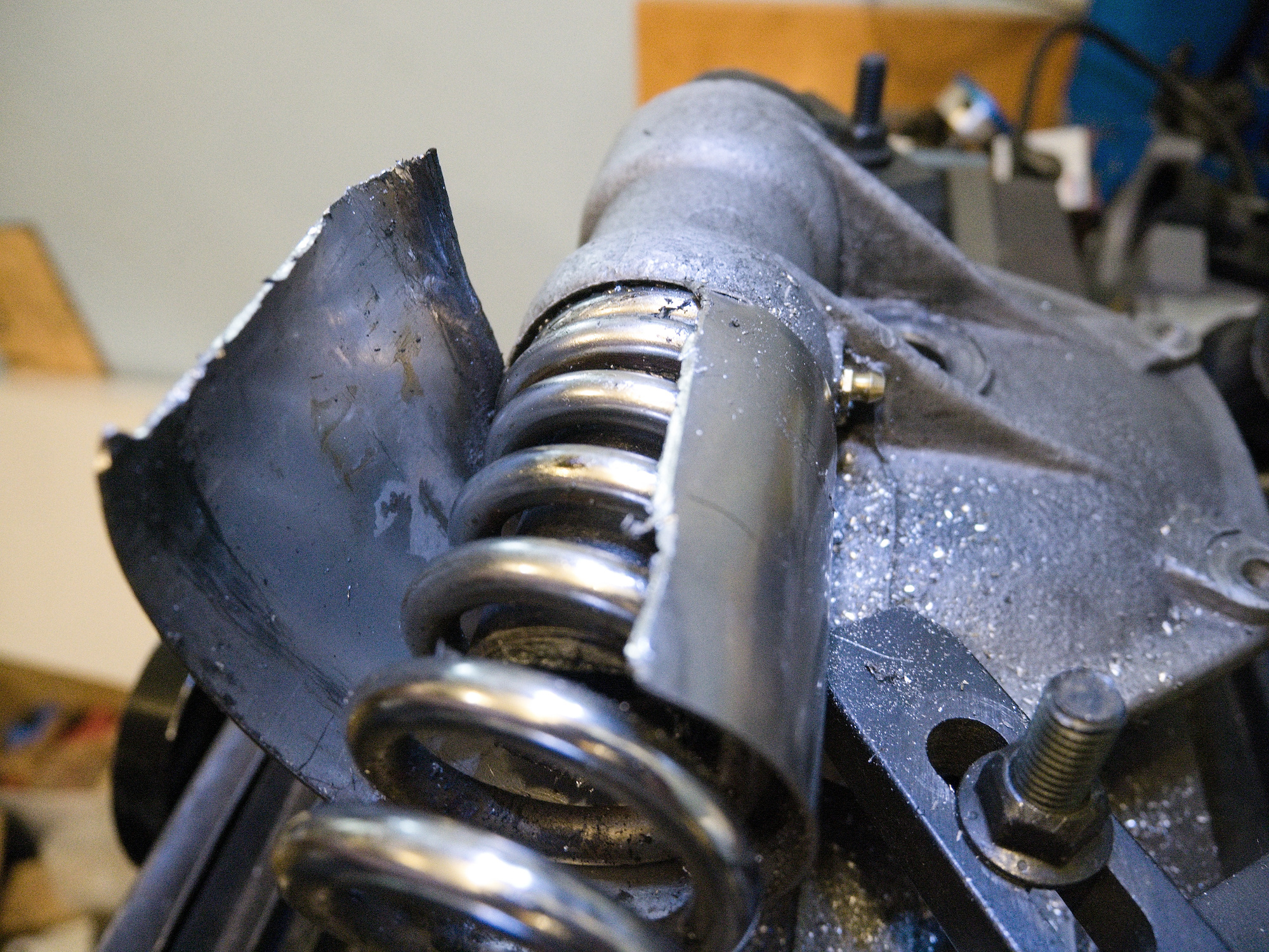 The suspension spring on the old final drive (FD) needs to be removed as it is reused for the new FD. It turned out that the measurement of the new suspension spring is different from the old one. It is only a small amount, but left and right suspension side need to match.