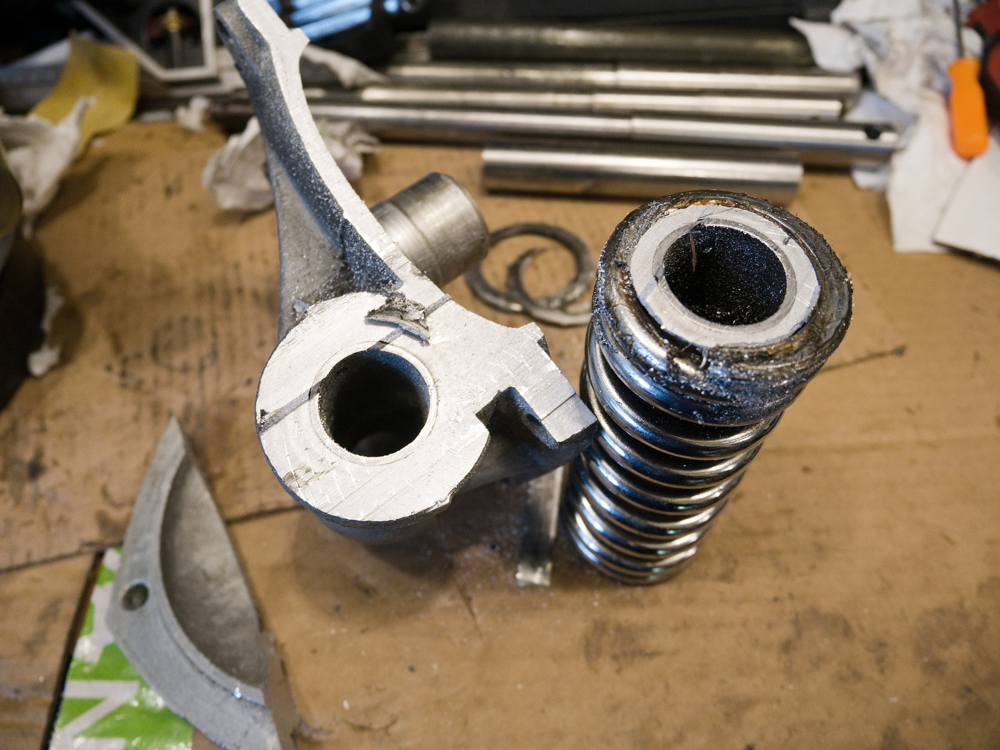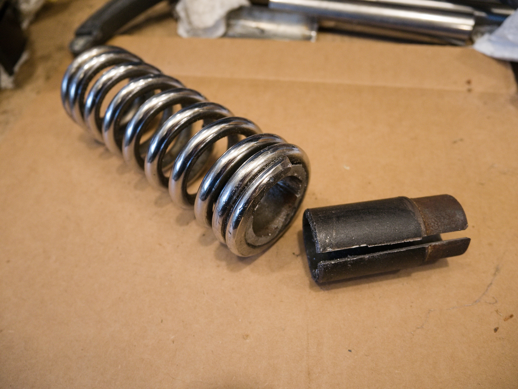The spring is separated, but the guide for the suspension rod is still stuck.