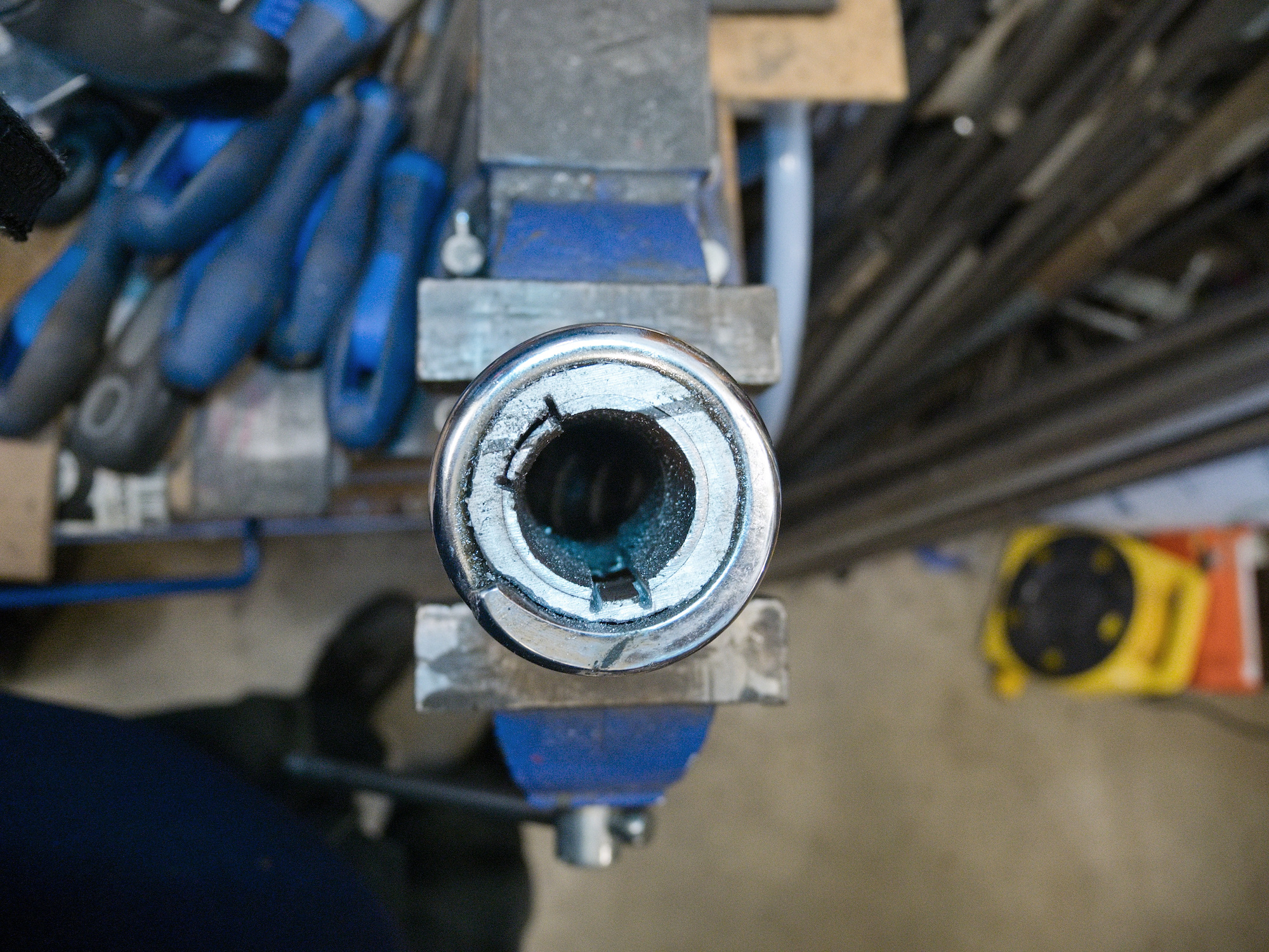 The guide consists of two parts. The inner part can now be tapped out.