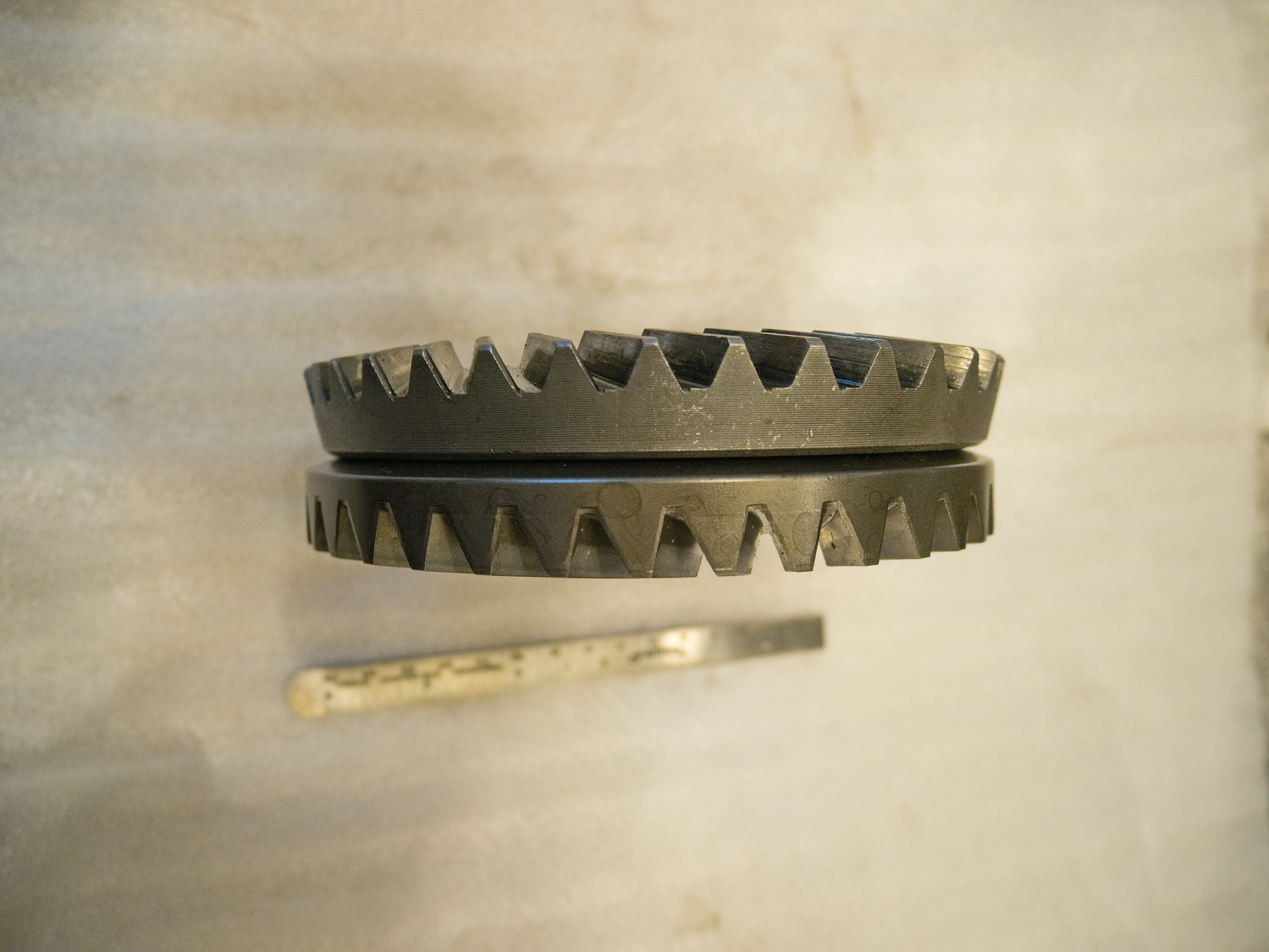 The CJ750 FD does not use the bronze slitted washer to keep a minimal distance between the ring and pinion gear, and with the o-ring on the wheel side, the ring gear never slides towards the pinion.