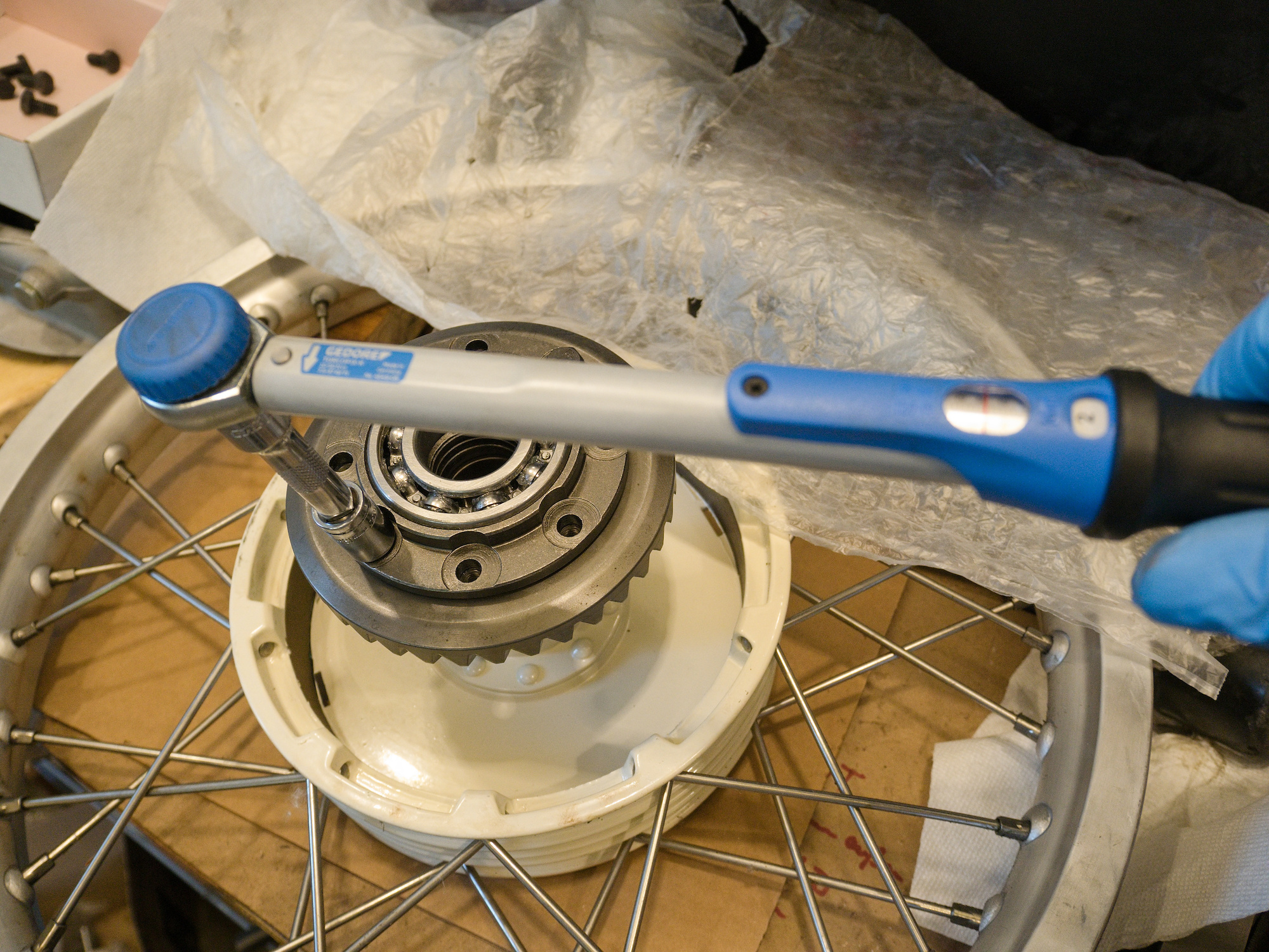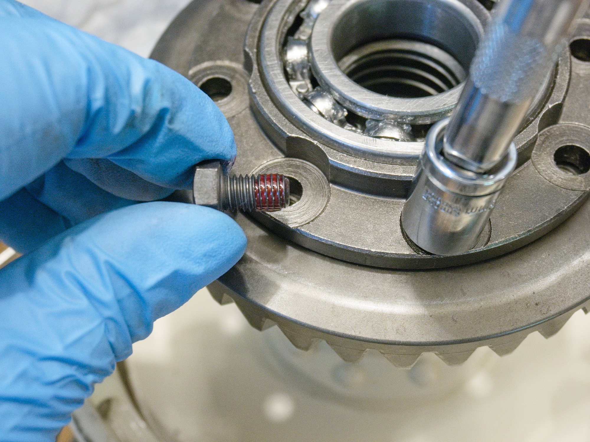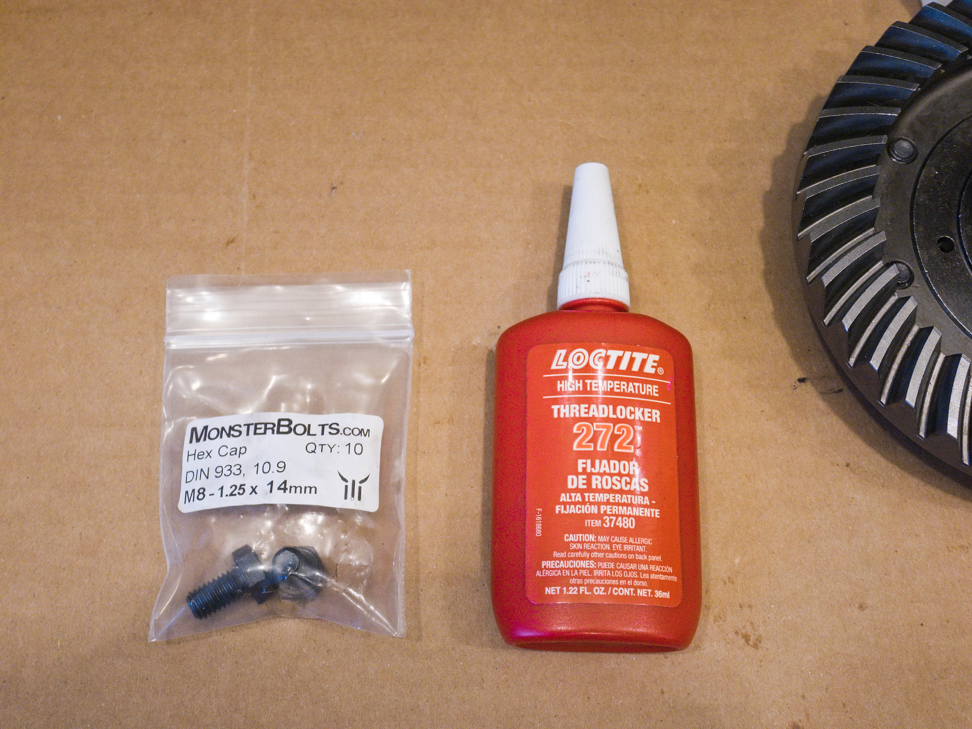 The M8x14 1.25 bolts, class 10.9, to connect the hub with the ring gear are secured with red loctite 272.