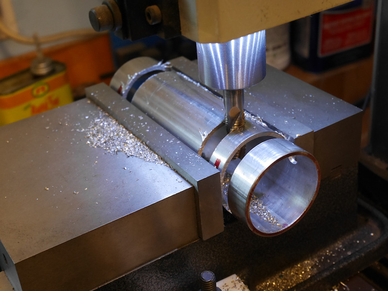 I made the connector out of bronze with M4 on the outside and M3 for the cap screw. Use a 3mm or 1/8" drill bit for M4 as this material is very soft.