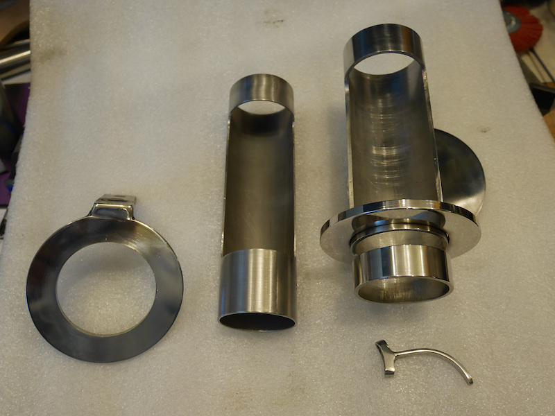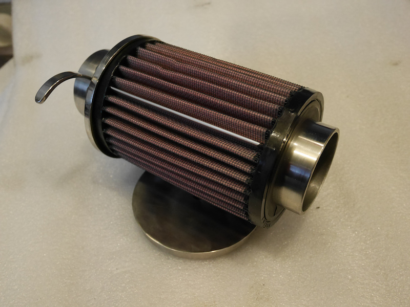 The tubes were made out of stainless steel, grade 304.Changed the filter from 6" length to 5" length (K&N Filter RD-0610) to cover for the air adjustment lever.