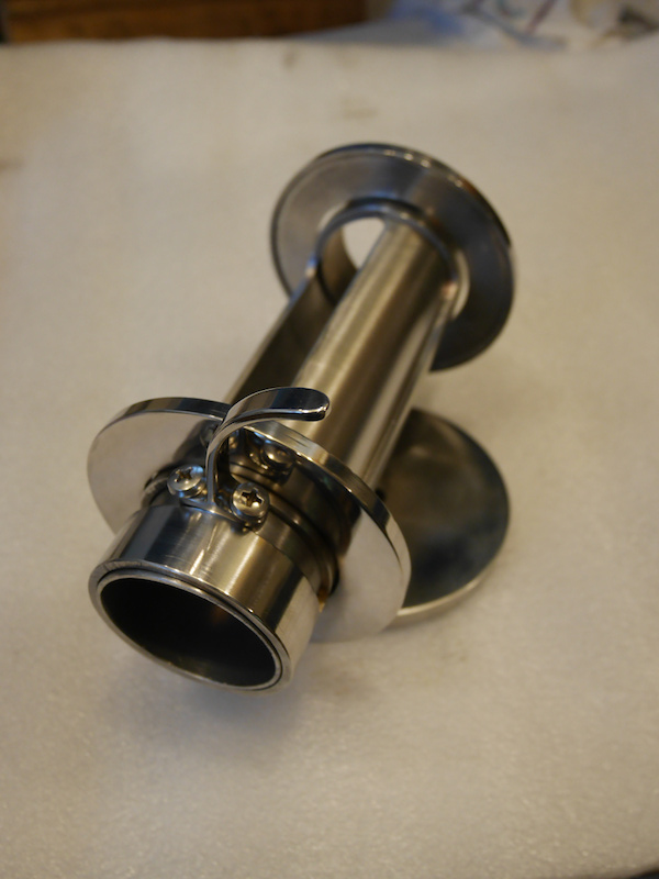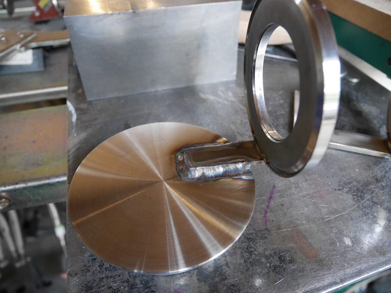 Using a 90° and a 45° stainless steel elbow with 3mm thickness seemed to be a good start.Don't have back purging, so some sand would just do it.