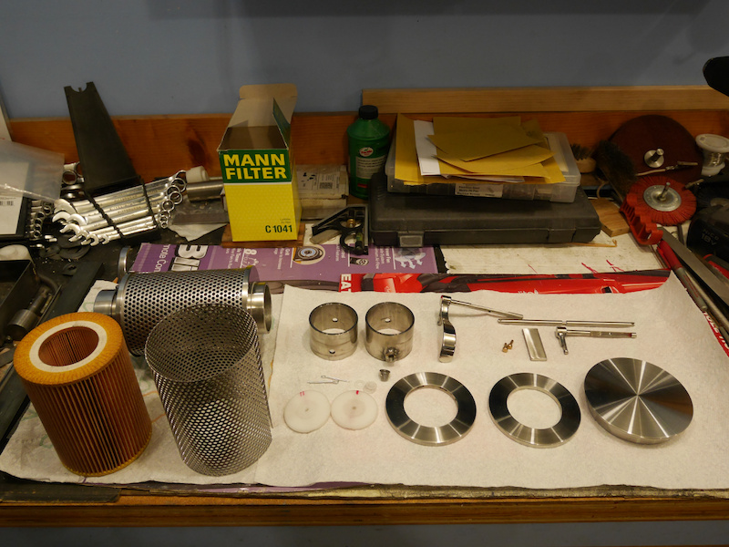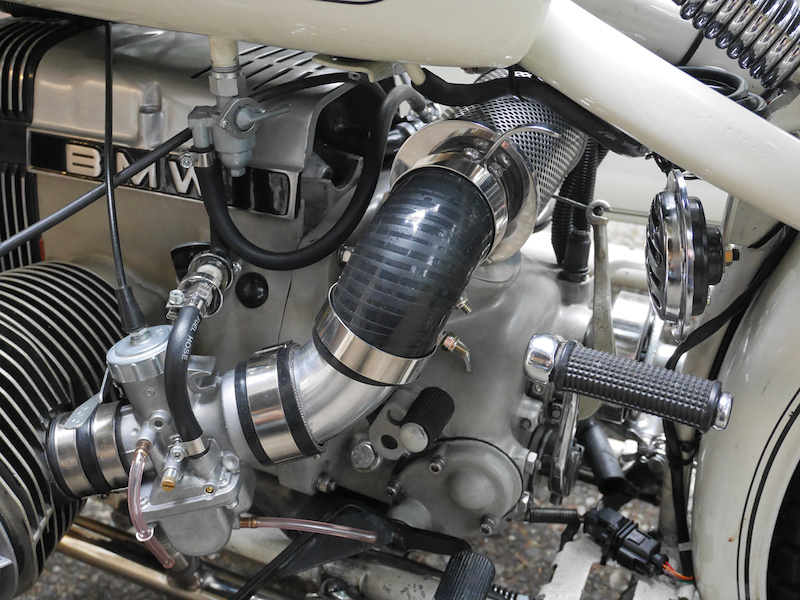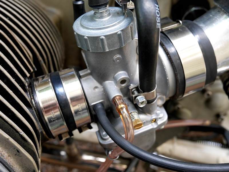 With the custom air filter and new carbs, the standard intake pipes do not fit and the aluminum - rubber combination looked ugly.