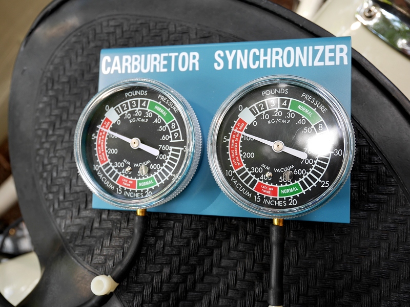 Connecting a simple vacuum gauge shows the negative pressure for each side. Use the idle adjustment screw to set for an equal value.