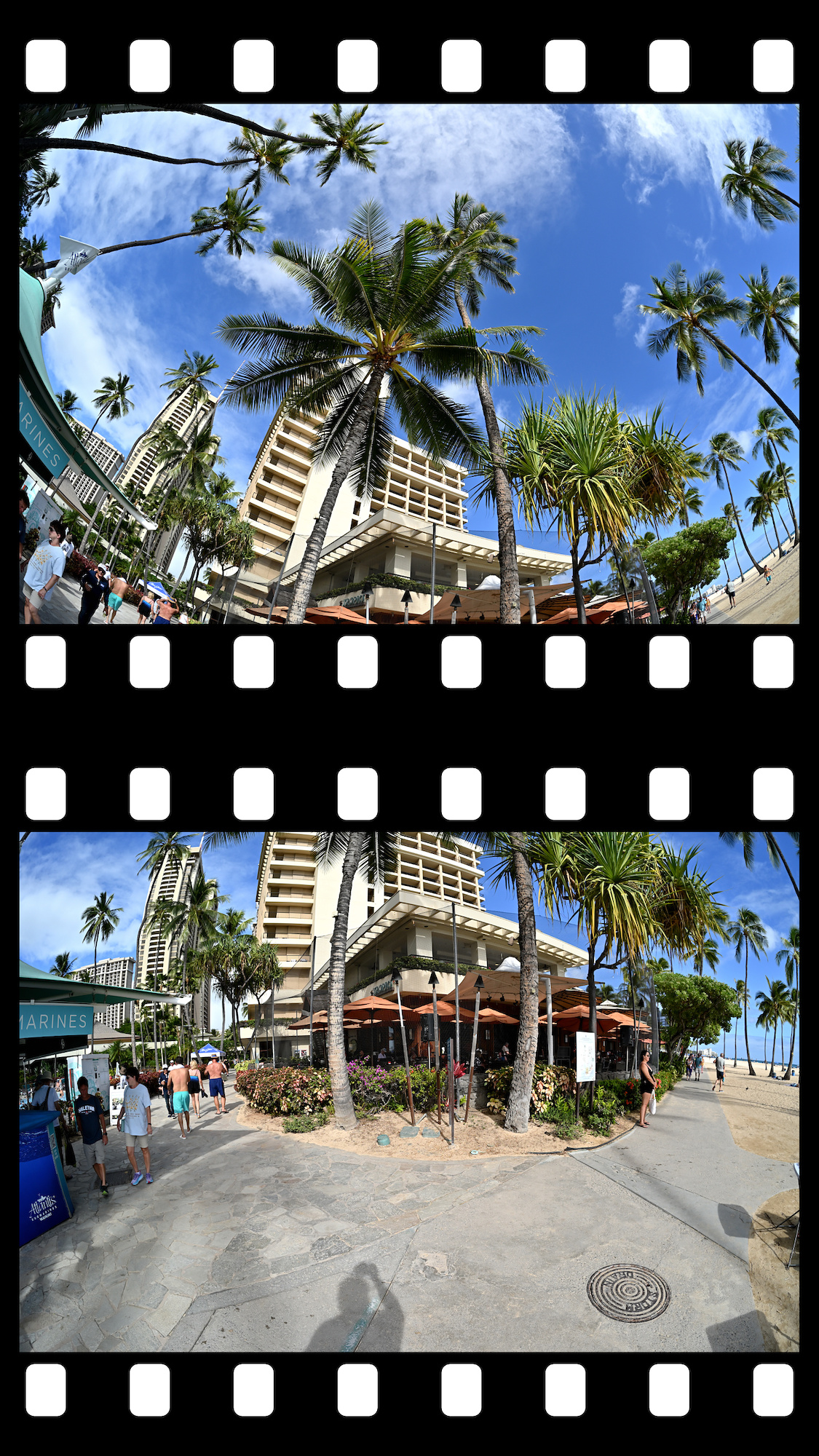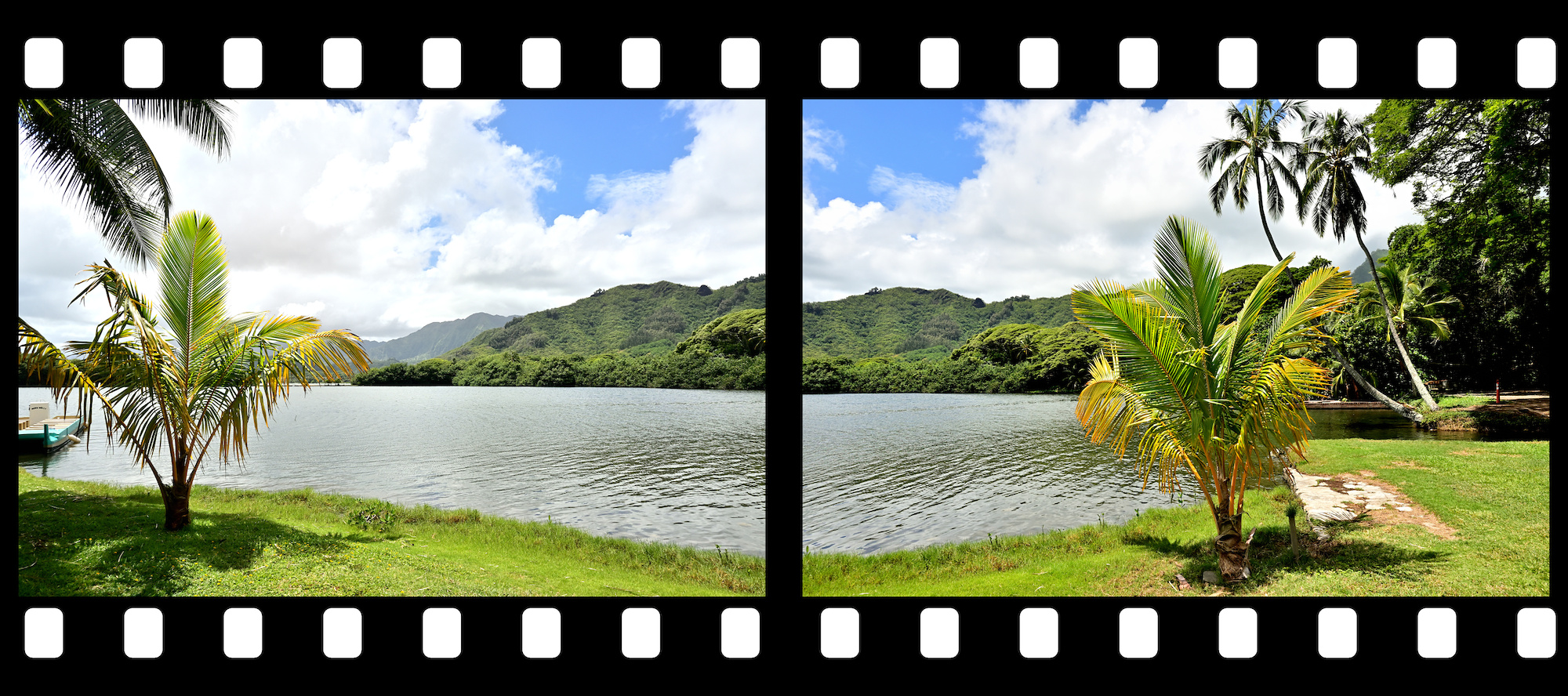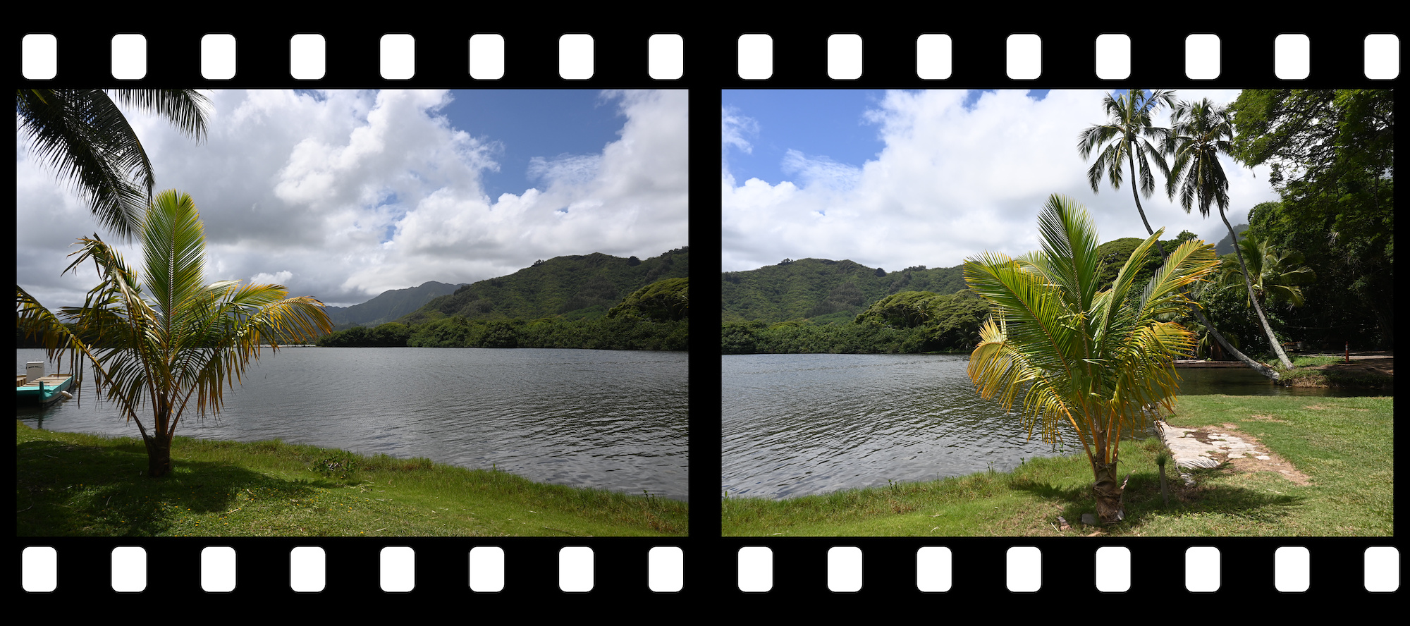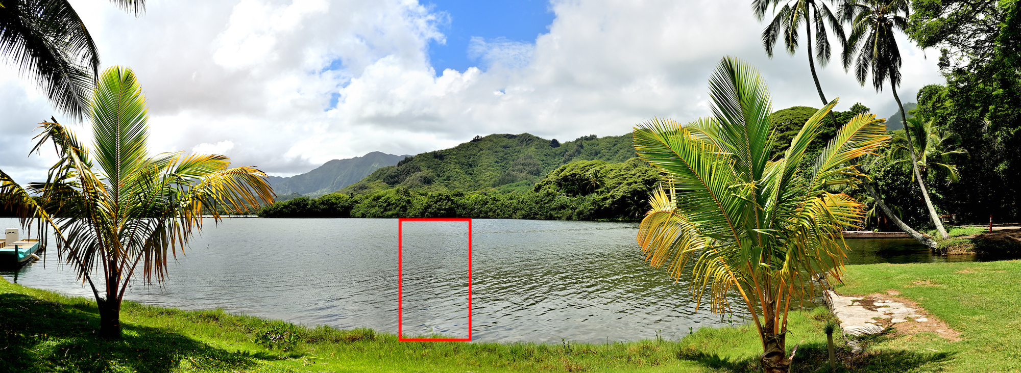 While at Kualoa Ranch taking a 360°×180° panorama, I also made a 1x2 panorama at a picturesque point. But both pictures were taken with different exposures using the auto setting. The left side picture is 1/500s f/8 and the right side picture is 1/400s f/7.1