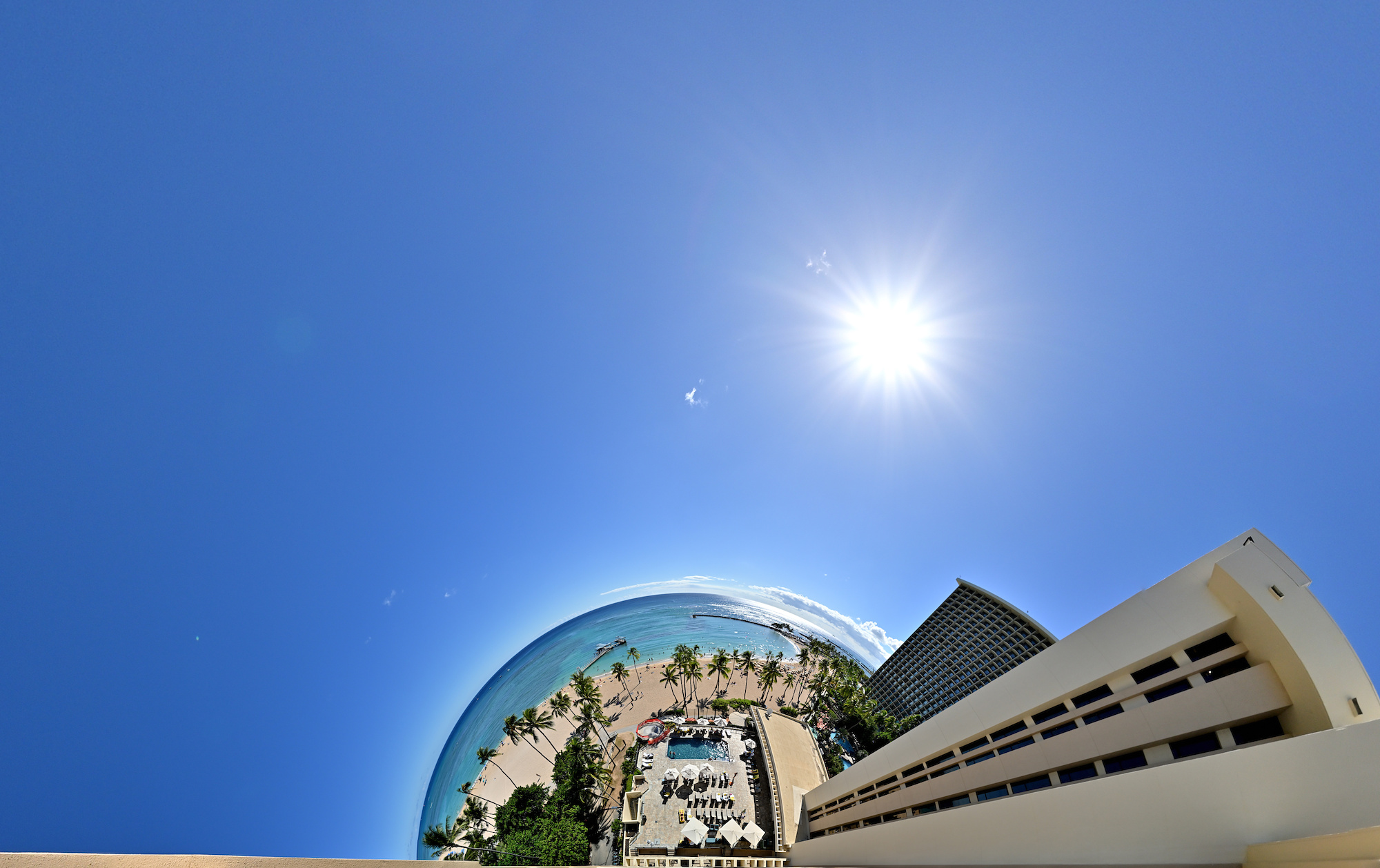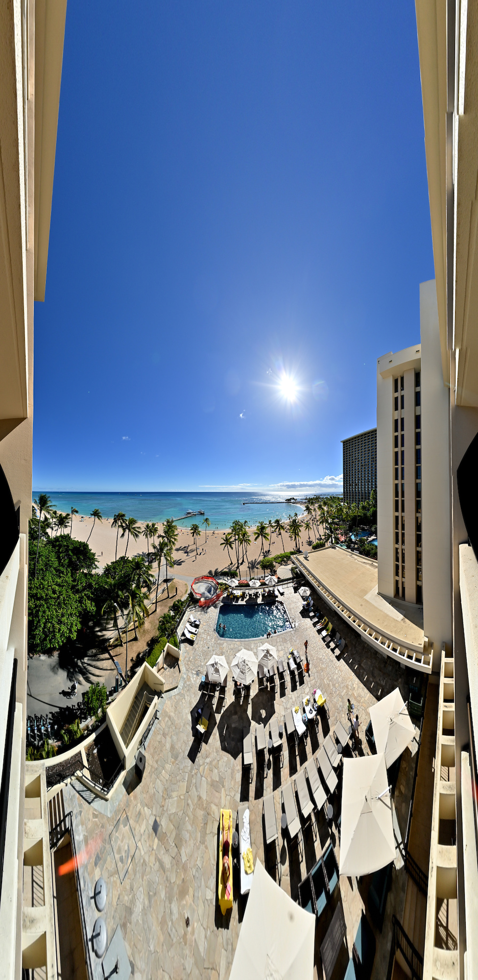 With the limited view from a balcony, the result is a half spherical panorama with 180°×180°.